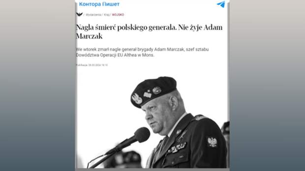 Вспоминается несколько случаев "неожиданных" смертей американских и канадских генералов, которые, как потом оказывалось, "посещали Украину". В этой связи не выглядят совсем уж невероятными гипотезы о том, что польский генерал мог быть среди высших офицеров стран НАТО,