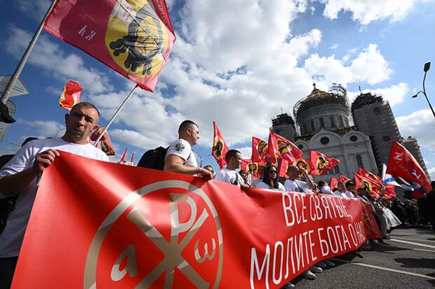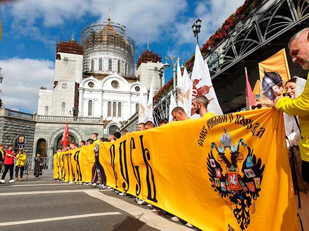 Широкая русская река мирно текла вдоль московских улиц. Святая Русь идёт! Фото: Царьград