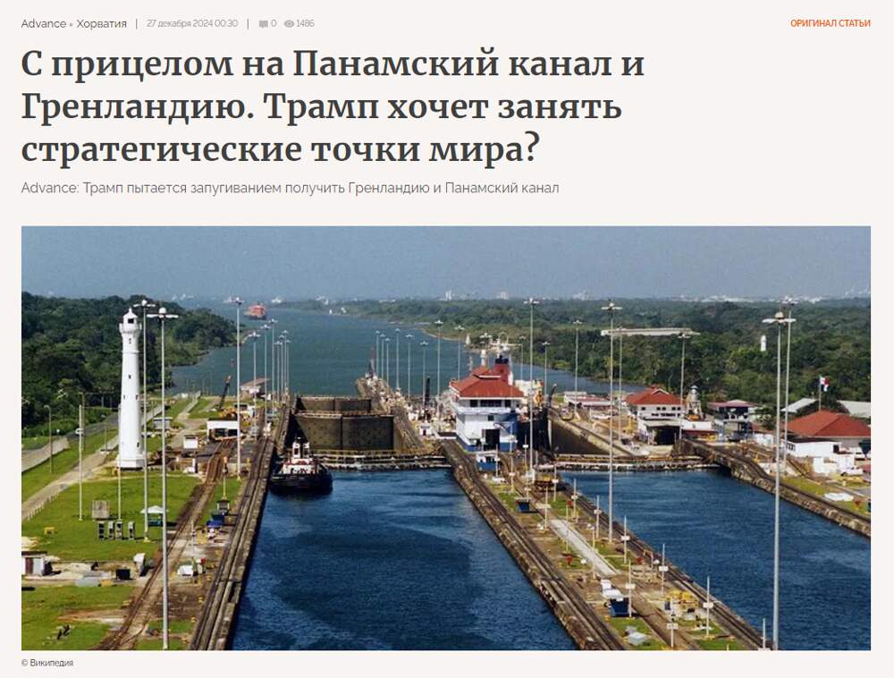 Advance, Хорватия "Абсолютная необходимость" Владение и контроль над огромным островом Гренландия — это, по словам Трампа, "абсолютная необходимость" для США. Так же он относится и к Панамскому каналу, пишет Advance. Трамп в очередной раз пытается запугиванием добиться желаемого. Получится ли?... Далее